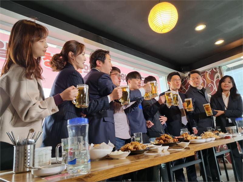 국민의힘 청년 지도부와 대통령실 청년 정책 담당 행정관, 고용노동부 관계자 등 '청년 당정대'(당·정부·대통령실)가 MZ세대 노동조합과 '치맥회동'을 하며 근로시간 유연화 정책을 논의했다.