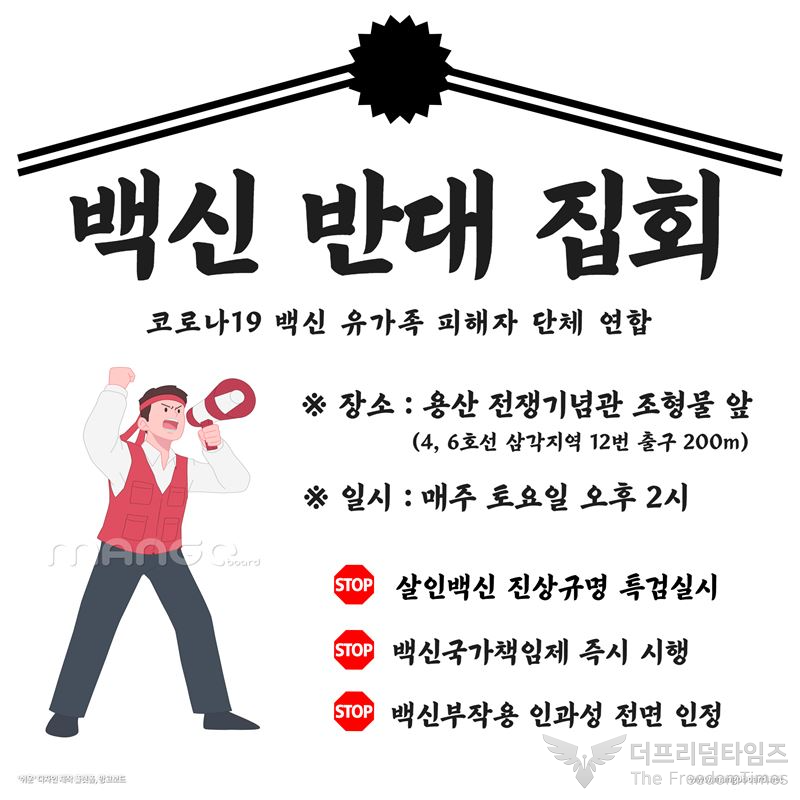 코로나19·백신 유가족 피해자 단체 연합 집회 알림 포스터 (사진=더프리덤타임즈)