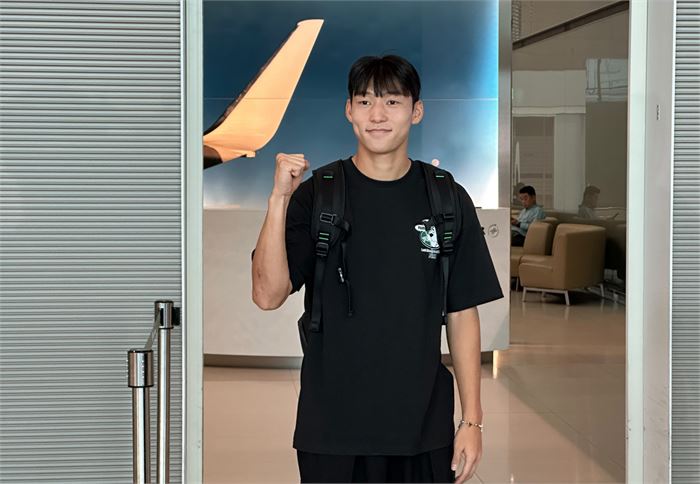 잉글랜드 프로축구 챔피언십(2부 리그) 스토크시티 입단을 마무리 짓기 위해 28일 인천국제공항에서 출국하는 대전하나시티즌 소속의 배준호(20)가 출국에 앞서 포즈를 취하고 있다. (사진=연합뉴스 제공)