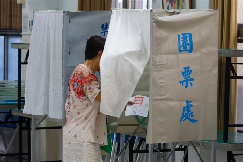 23일 대만 타이베이에서 한 유권자가 친중 성향 야당 의원들에 대한 파면투표와 원전 재가동 국민투표에 참여하고 있다.사진=연합뉴스