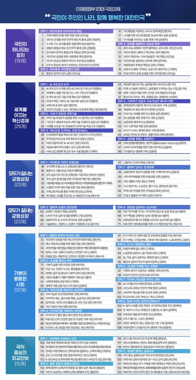 이재명 정부가 출범 두 달 만에 ‘이재명 정부 123대 국정과제’를 발표했다.