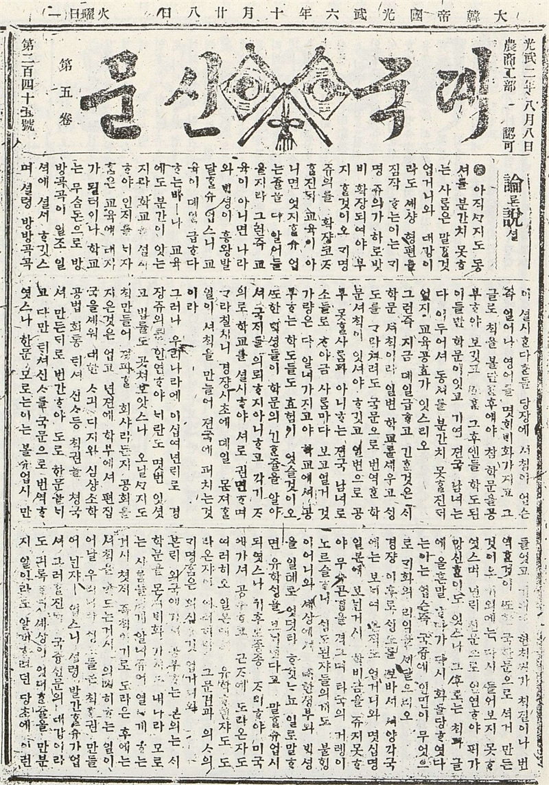 대한제국 광무 6년(1902년) 10월28일 화요일 제국신문 원문 일부.사진=국립중앙도서관