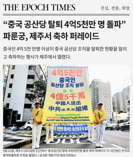 지난 9월 21일 제주에서 열린 대규모 '중국 공산당 탈당 축하 행사'가 전 세계적인 이목을 끌고 있다.