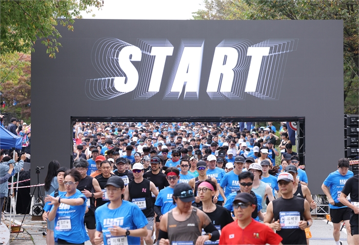 개천절인 지난 3일 강원 춘천시 남산면 엘리시안 강촌 리조트에서 열린 2025 춘천연합마라톤에서 참가자들이 힘차게 출발하고 있다.사진=연합뉴스