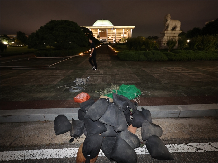 사진은 해태상 인근에 분향소를 설치하기 위해 놓인 물품들.사진=연합뉴스