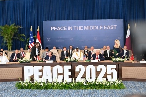 영국, 프랑스, 이탈리아 등 20여 개 주요국 정상과 안토니우 구테흐스 유엔 사무총장, 마무드 아바스 팔레스타인 자치 정부(PA, Palestinian Authority) 수반 등 세계 지도자 34명이 참석하여 트럼프 대통령의 가자지구 평화 구상에 지지를 표명했다.