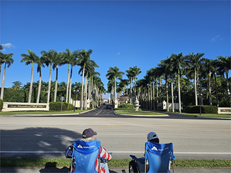 이날 미국 곳곳에서 트럼프 대통령에 반대하는 '노 킹스' 시위가 예정되었고 팜비치에서도 약 4개소에서 시위가 예상된다고 현지 언론이 전했으나, 트럼프 대통령의 동선 주변에는 시위대가 눈에 띄지 않았다.