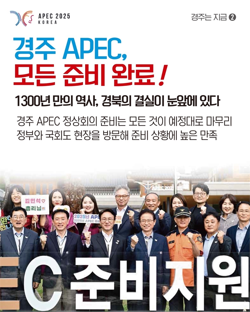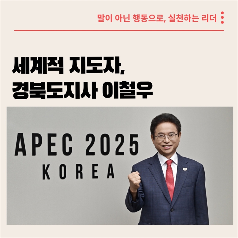 오는 10월 31일 개최되는 경주 아시아태평양경제협력체(APEC) 정상회의의 성공적인 개최를 위해 헌신하고 계신 이철우 경상북도 지사를 비롯하여, 이번 국제회의의 기획과 준비, 실행 과정에서 최선을 다해 노력하신 모든 지도자 분들과 관계자 여러분께 깊은 감사와 존경을 드린다.
