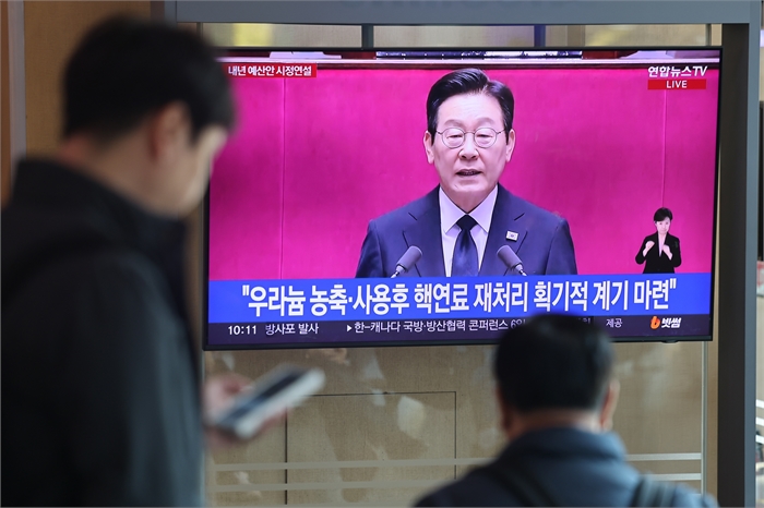 서울역 대합실에서 흘러나오는 이재명 대통령 시정연설 중계방송