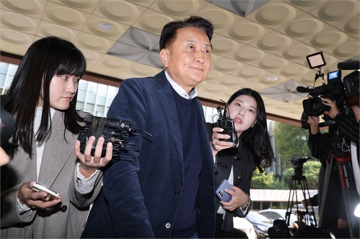 국회 오송참사 국정조사에서 위증한 혐의를 받는 김영환 충청북도 도지사가 4일 서울 영등포경찰서로 출석하고 있다.사진=연합뉴스