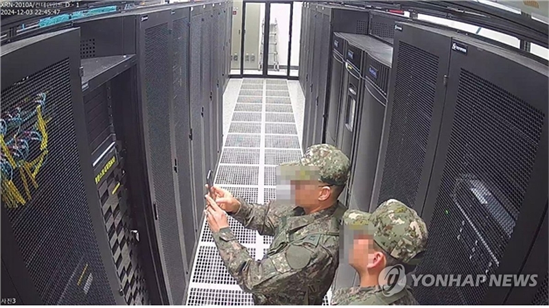 국회 행정안전위원회는 지난 2024년 12월3일 계엄령 선포 당시 선거관리위원회에 투입된 계엄군이 선관위 시스템 서버를 촬영하는 장면이 담긴 CCTV를 6일 공개했다.사진=연합뉴스