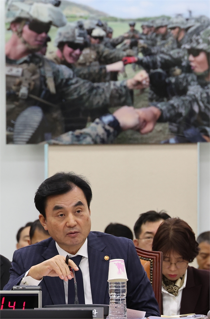 안규백 국방부 장관이 5일 서울 여의도 국회에서 열린 국방위원회 전체회의에서 질의에 답하고 있다.사진=연합뉴스