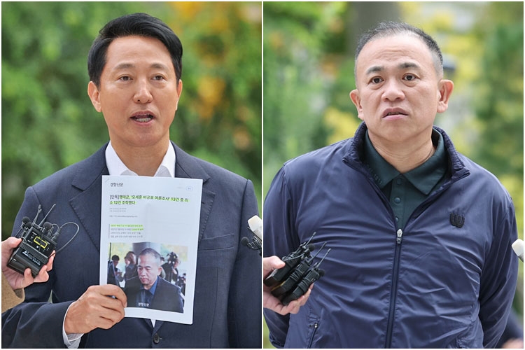 오세훈 서울시장과 명태균 씨가 지난 8일 민중기 특별검사팀에 함께 출석하여 8시간가량 진행된 '여론조사비 대납 의혹' 관련 대질조사를 받았다.