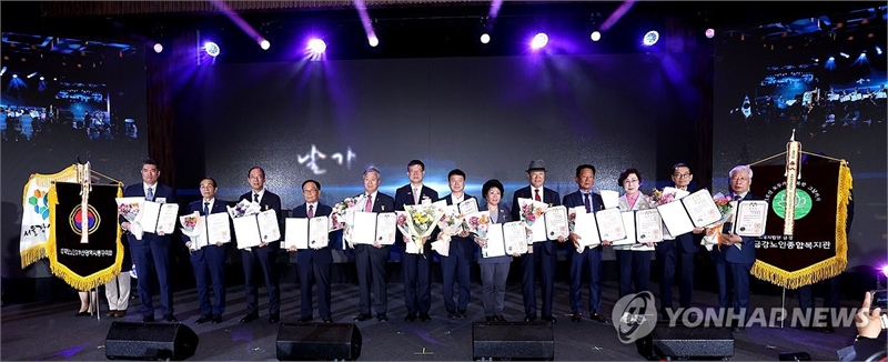 지난 2024년 10월2일 서울 서초구 aT센터 그랜드홀에서 열린 제28회 노인의 날 기념식에서 수상자들이 기념 촬영하고 있다.사진=연합뉴스
