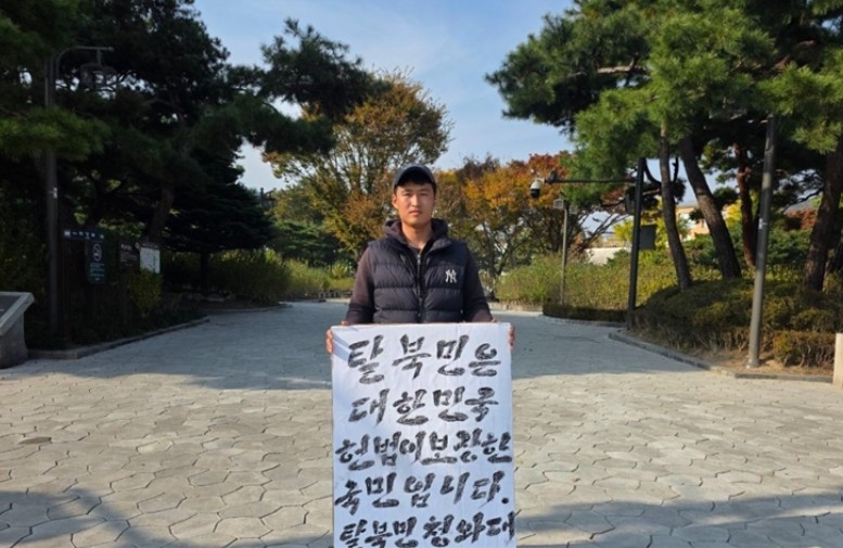 탈북민 청와대 출입 불가에 항의하여 1인 시위 중인 시민.사진=소셜미디어(SNS) 캡처