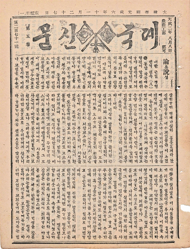 대한제국 광무 6년(1902년) 11월27일 목요일 제국신문 원문.사진=국립중앙도서관