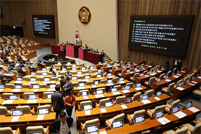 그러나 이날 본회의에서 김윤덕 국토교통부 장관이 불참하자 국민의힘 의원들이 항의하며 잠시 퇴장했고, 그 사이 더불어민주당을 포함한 범여권 의원들이 법안을 전격 부결시켰다.