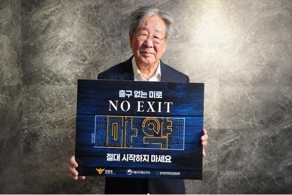 마약 범죄 예방을 위한 ‘노 엑시트’(NO EXIT·출구 없음) 캠페인에 참여한 배우 최불암.사진=경찰청