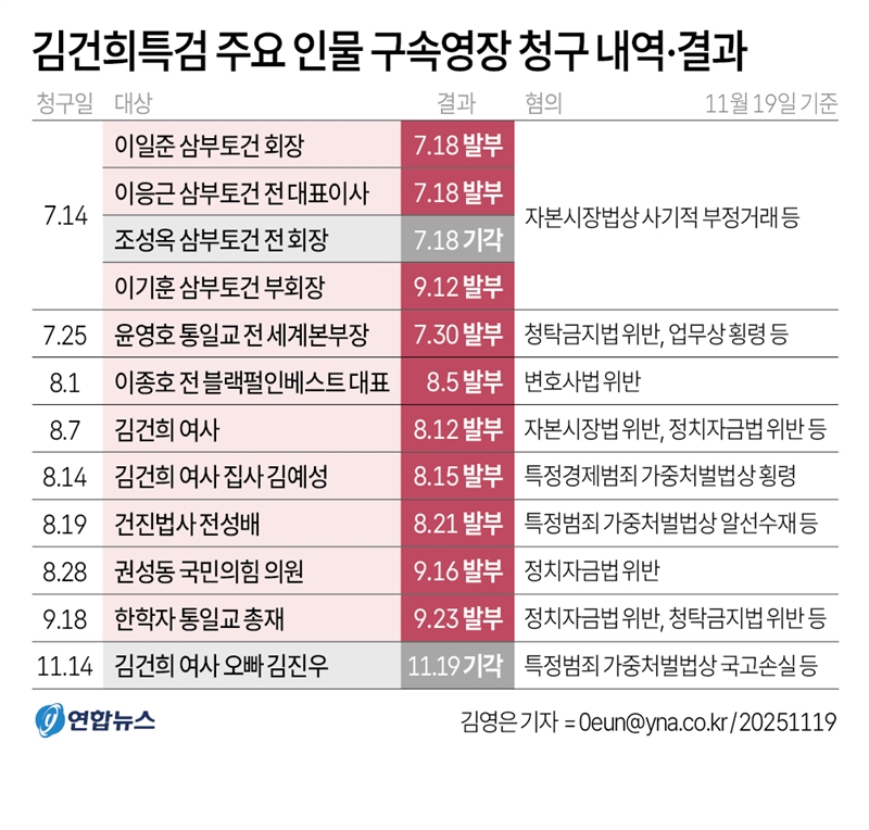 김건희특검 주요 인물 구속영장 청구 내역·결과