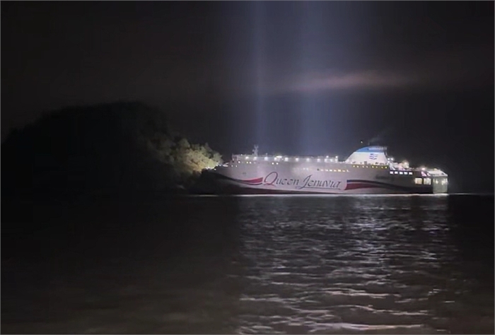 퀸제누비아2호는 이날 오후 4시 45분 제주항에서 출발해 오후 9시 목포항 도착 예정이었으나 장산도 인근 무인도 족도 위에 선체 절반가량이 올라서며 좌초했다.