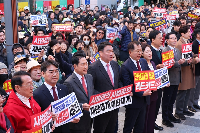 이날 오후 국민의힘은 부산 중구 광복중앙로에서 '민생회복 법치수호 국민대회'를 성황리에 개최했다.