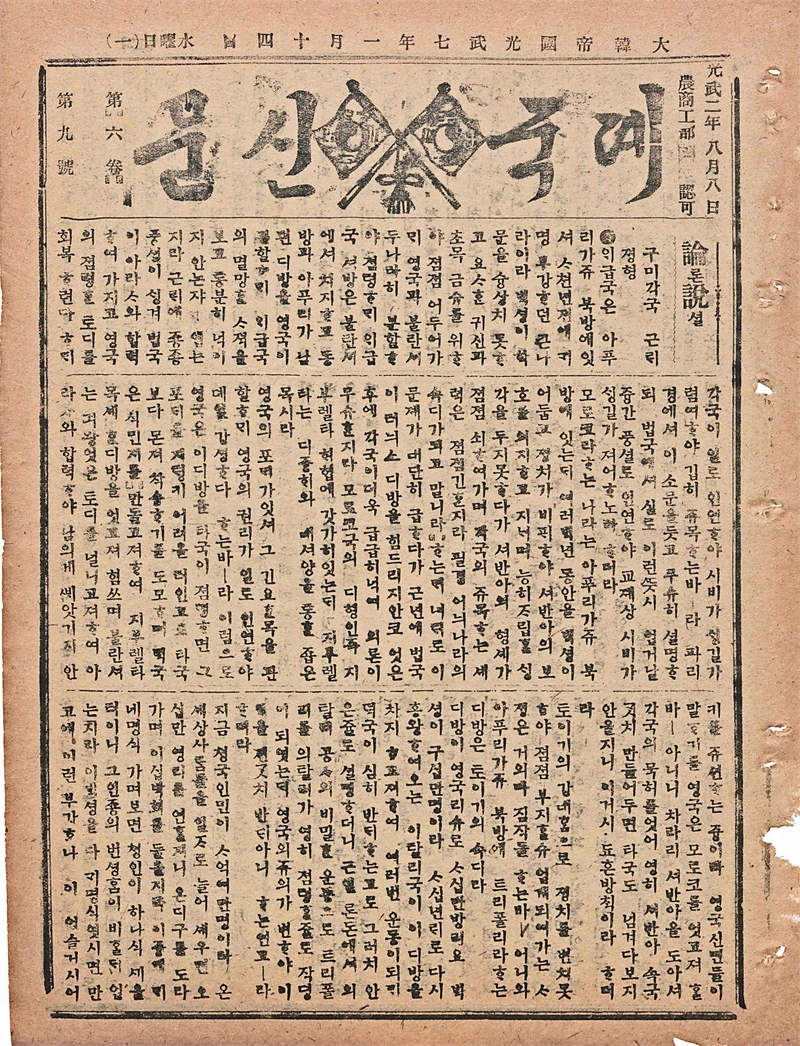 아울러 지난 24일자 연재를 끝으로 우남 이승만 논설문집 제5권을 마무리하였으며, 이날부터 제6권 제9호를 새롭게 시작합니다. 제6권 제9호는 대한제국 광무 7년, 1903년 1월 14일 수요일에 발표된 논설로, 당시 시대적 정황과 사상적 흐름을 담고 있습니다.