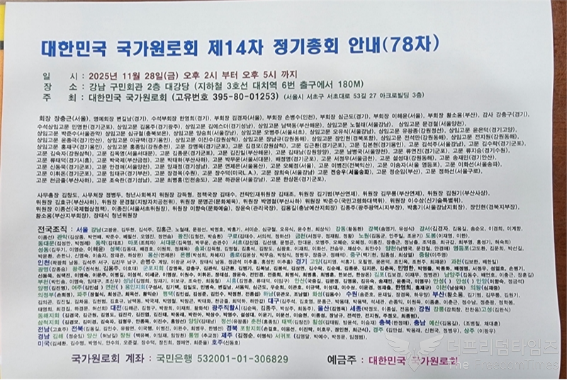 대한민국 국가원로회 제14차 정기총회 안내.사진=더프리덤타임즈