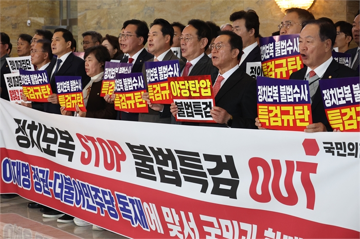 법원의 영장 기각을 통해 국민의힘을 겨냥한 특별검사팀의 '짜맞추기 수사'와 더불어민주당의 '내란 정당' 공세가 야당 탄압 차원임을 확인했다고 주장하며 국면 전환을 시도하는 모양새다.