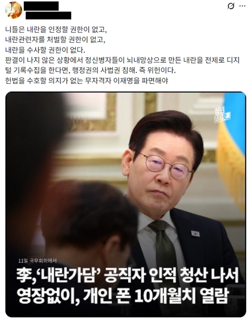◆ 이재명 정권의 '반국가적 행위' 비판, 불법과 위법을 간과해서는 안 된다