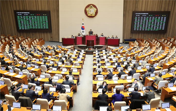 12일 국회 본회의에서 형사소송법 일부개정법률안이 통과되고 있다.사진=연합뉴스