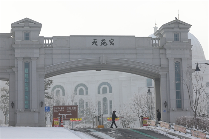경찰이 정치권 통일교 금품 수수 의혹과 관련해 압수수색에 나선 15일 오전 경기도 가평군 통일교 천정궁 입구가 적막하다.사진=연합뉴스