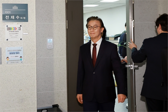 전재수 전 해양수산부 장관이 15일 국회의원회관 내 사무실에서 나오고 있다.