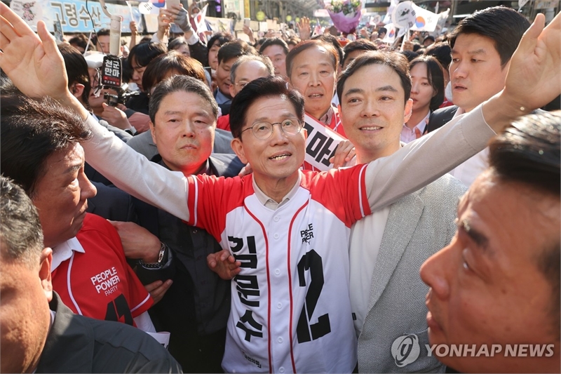 지난 5월12일 국민의힘 김문수 대선 후보가 대구 서문시장을 방문해 시민들과 인사하고 있다.