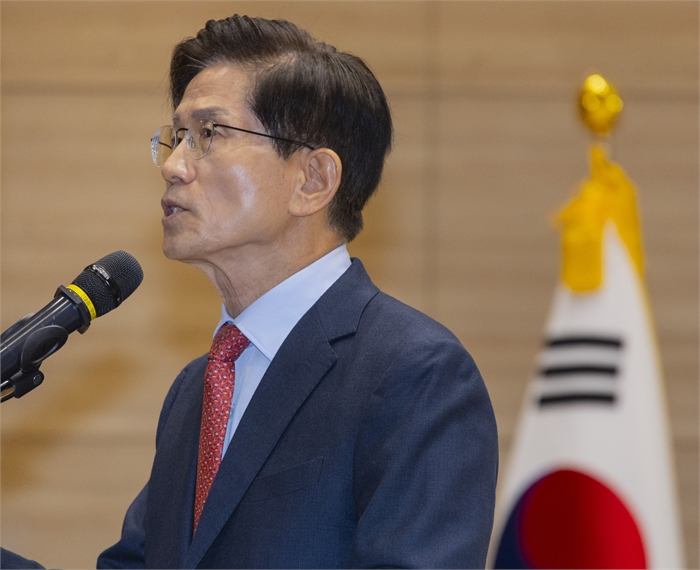 국민의힘 장동혁 대표가 19일 청주 오스코에서 열린 충북도당 당원 교육 행사에 참석해 축사하고 있다.사진=연합뉴스