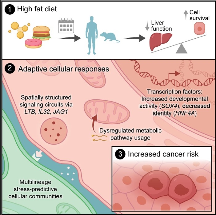 연구 결과, 고지방 식단은 초기 단계에서 세포자멸사(apoptosis) 저항성을 높이고 세포 증식을 촉진하는 유전자 등, 간세포가 스트레스 환경에서 살아남는 데 도움이 되는 유전자들의 활성화를 유도하는 것으로 나타났다.