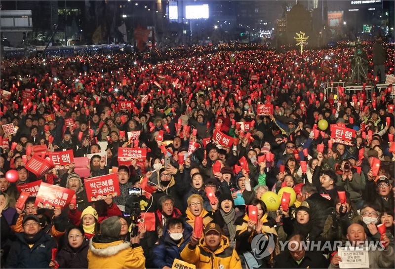 2017년 박근혜 대통령 탄핵 선고 전 마지막 주말 촛불집회.사진=연합뉴스