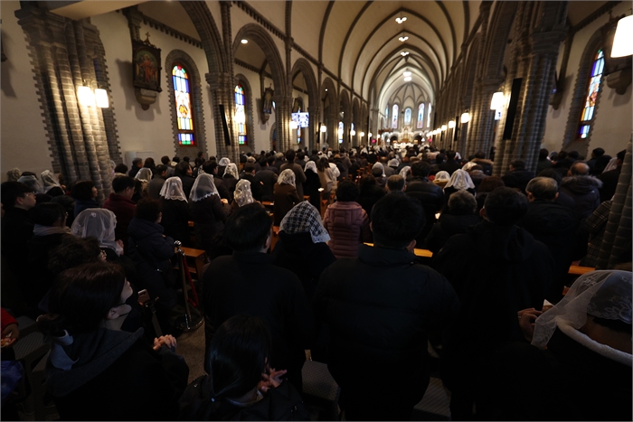 크리스마스인 25일 대구 중구 주교좌 계산대성당에서 많은 신자가 성탄절 미사에 참석하고 있다.사진=연합뉴스