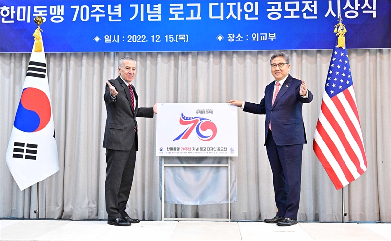 지난 2022년 12월15일 외교부와 주한 미국대사관은 '한미동맹 70주년 기념 로고 디자인 공모전' 시상식을 개최했다. 당시 박진 외교부 장관(오른쪽)과 필립 골드버그 주한 미국대사.사진=외교부/연합뉴스