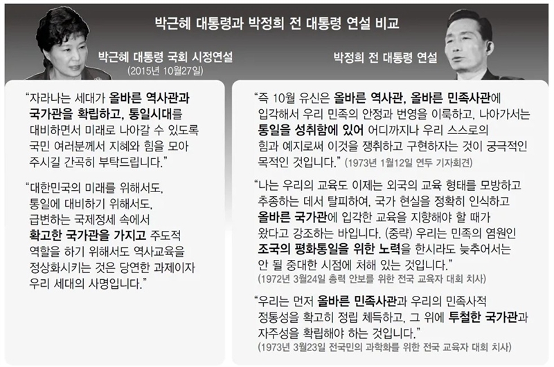 박근혜 대통령과 박정희 전 대통령의 역사관과 국가관.사진=나무위키 캡처