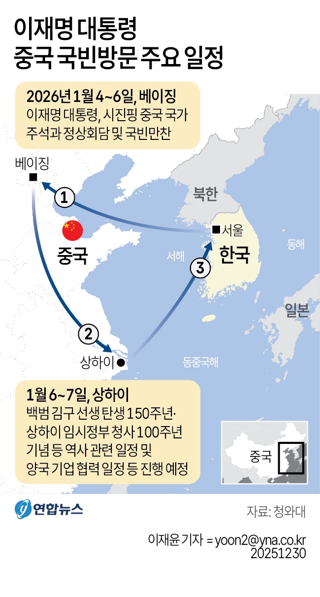 이재명 대통령은 내년 1월 4∼7일 중국을 국빈 방문한다.