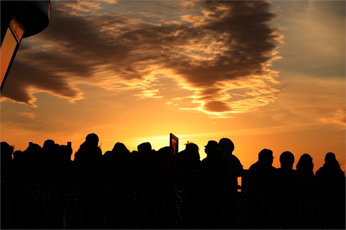 일몰 시간이 되자 시민들은 탄성을 지르거나 휴대전화로 촬영하며 지는 해를 감상했다.
