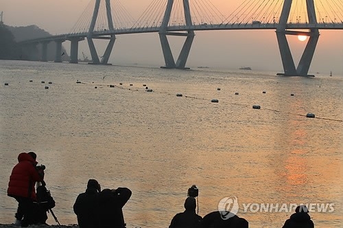 경남 지역 해맞이 명소들은 병오년 1월 1일 영하권 추운 날씨에도 새해 첫 일출을 보며 소원을 비는 인파로 북적였다.