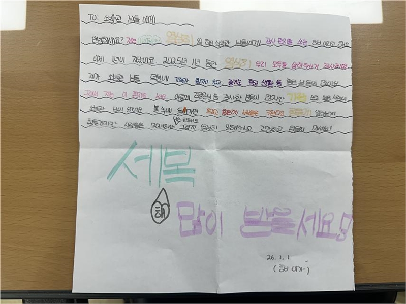 이처럼 익명의 어린이가 전한 따뜻한 마음은 혹한 속에서 시민 생명을 지키는 소방관들에게 큰 힘이 되고 있다.