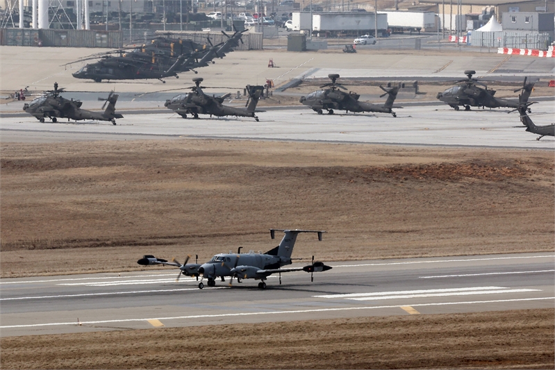평택 주한미군 기지에 주둔해오던 미국 육군 1개 비행대대가 지난달 비활성화(deactivate)된 것으로 파악됐다. 도널드 트럼프 행정부의 글로벌 군사 전략 재편의 하나로 주한미군 감축·재배치 또는 역할 조정 가능성이 제기되는 가운데 나온 조치여서 주목된다.사진=연합뉴스