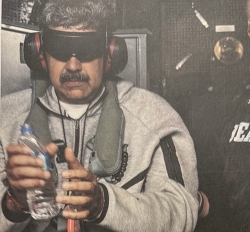 도널드 트럼프 미국 대통령이 3일(현지시간) 미군이 기습적인 군사 작전으로 체포한 니콜라스 마두로 베네수엘라 대통령의 근황 사진을 사회관계망서비스(SNS) 트루스소셜에 공개했다. 사진=트럼프 트루스소셜 계정/연합뉴스