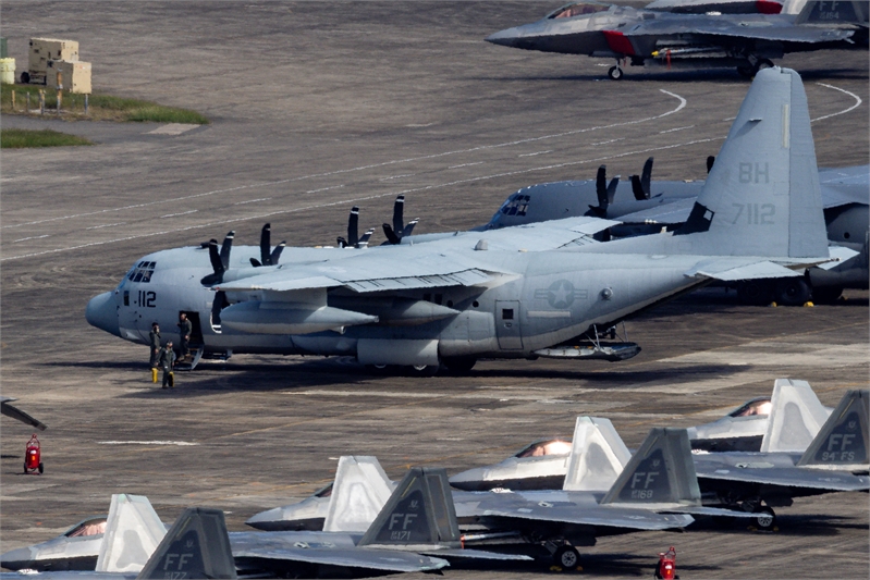 푸에르토리코 공군기지에 배치된 미국 해병대의 KC-130J 수송기.사진=연합뉴스