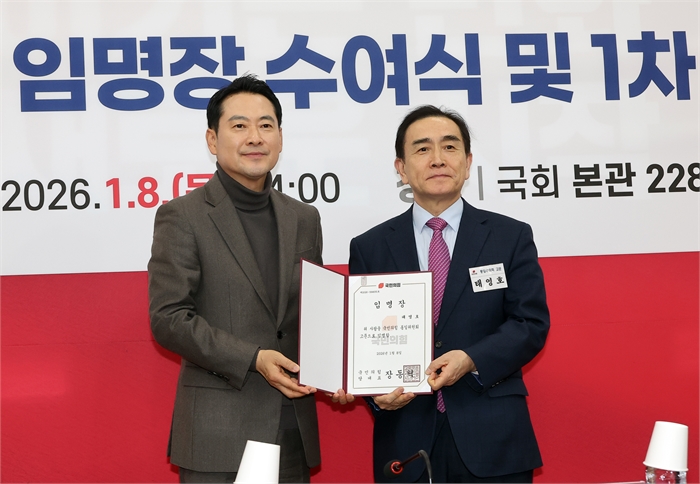 장동혁 당 대표는 8일 오후 당사에서 열린 통일위원회 임명장 수여식 및 제1차 전체회의에 참석해 김기웅 위원장과 위원들에게 임명장을 수여했다.
