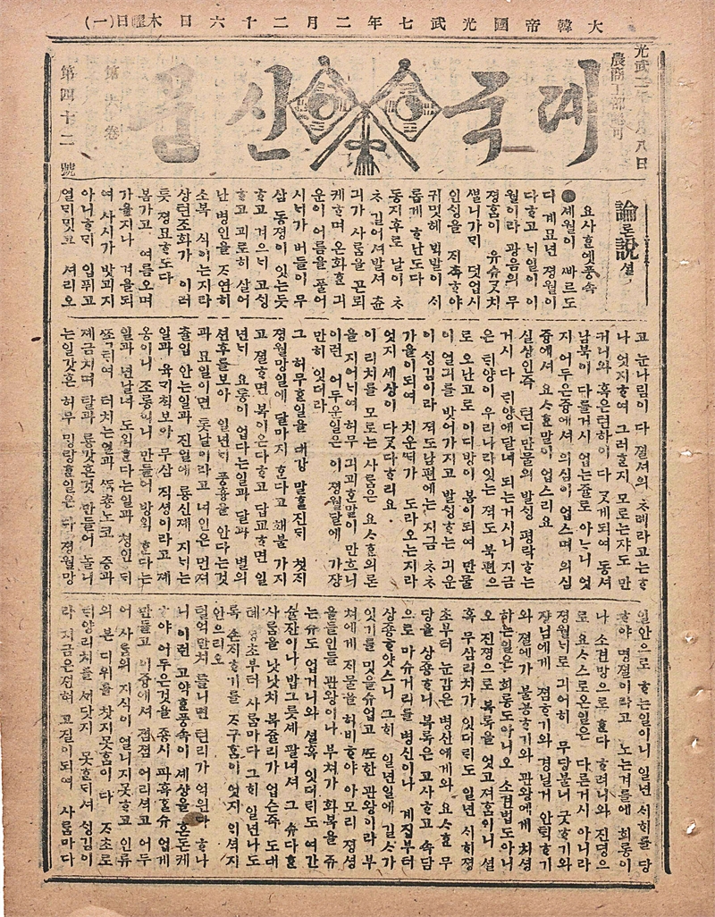 대한제국 광무 7년(1903년) 2월26일 목요일 제국신문 원문 일부.사진=국립중앙도서관