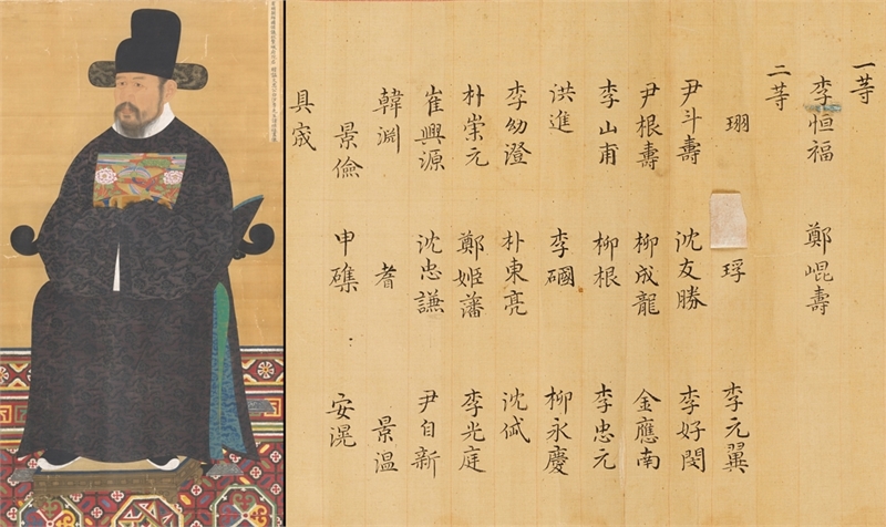 이항복 호성공신상 후모본(왼쪽)과 호성공신 교서