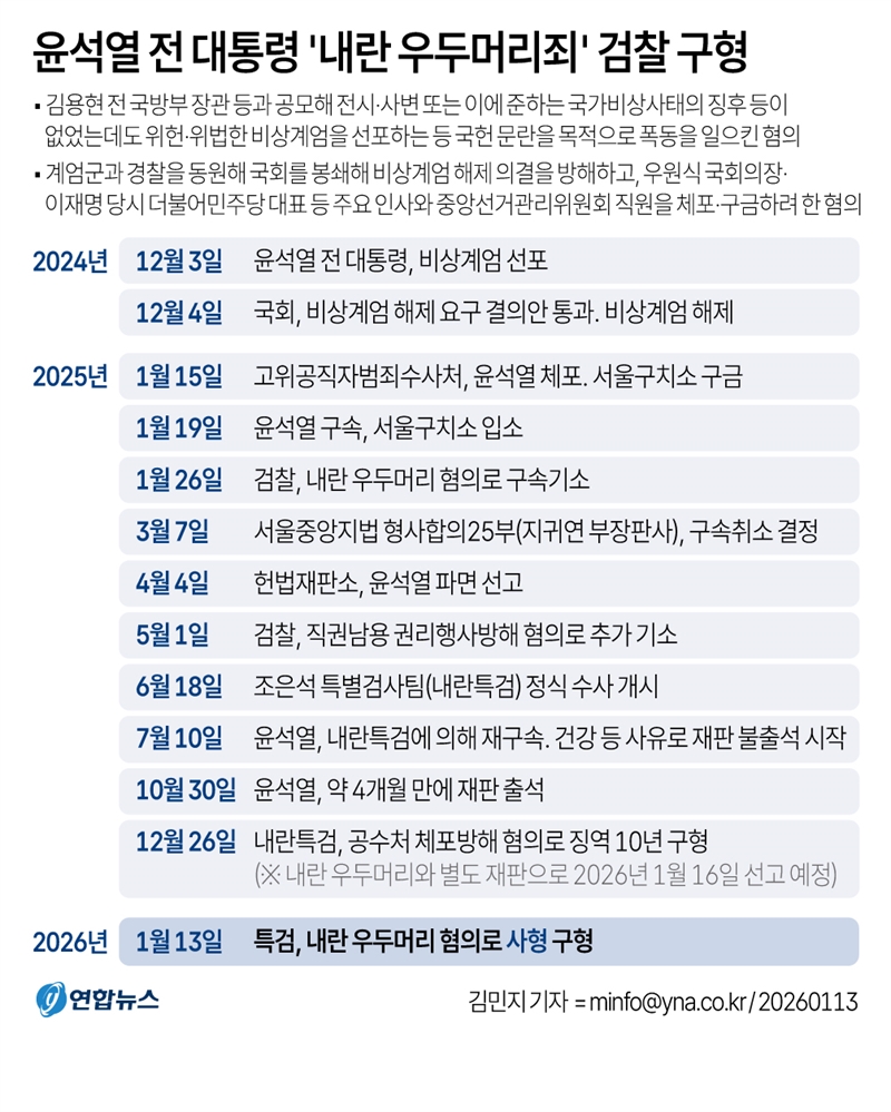 조은석 내란 특별검사팀은 13일 내란 우두머리 혐의로 기소된 윤석열 전 대통령에게 법정 최고형인 사형을 구형했다.